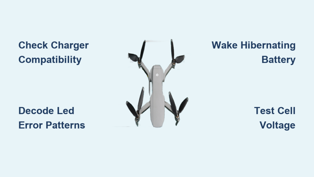 Your DJI drone sat unused for months, and now it won’t charge. The LEDs stay dark, or blink in confusing