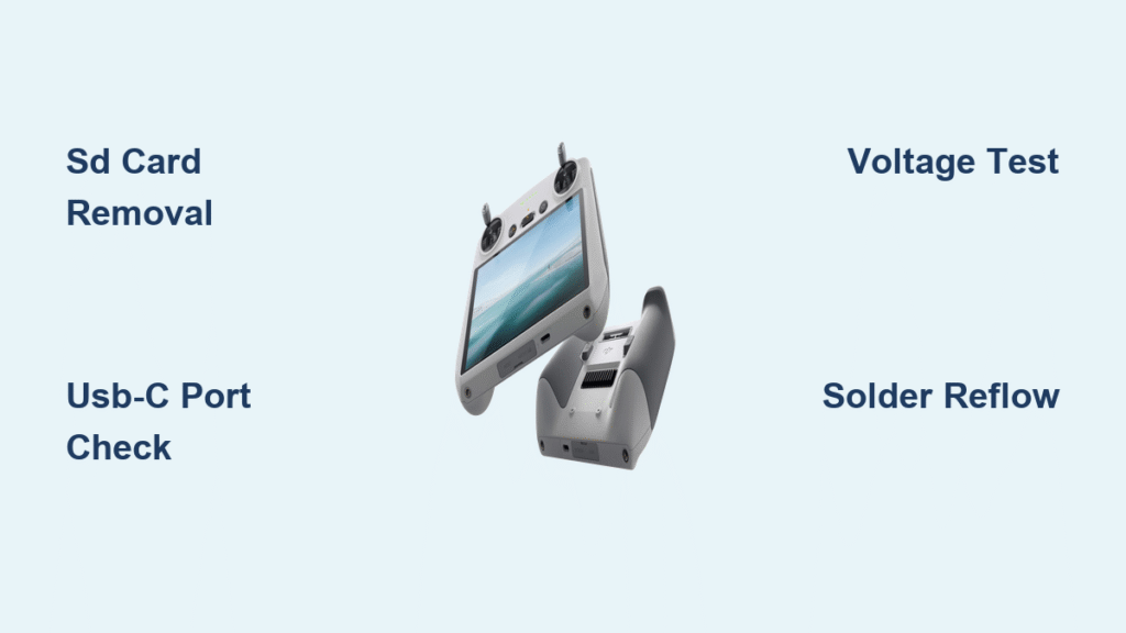 Here’s a bizarre but repeatedly documented bug: Your DJI controller refuses to charge when an SD card is inserted. This specific failure caused Xitor’s controller to remain dead on September 15th despite factory resets. To test this: Plug your USB-C cable into a powered source, connect it to the controller (expect no response), then immediately remove the micro-SD card while keeping the cable connected. If this is the culprit, the charging LED will blink within 5 seconds. This isn’t a glitch—it’s a confirmed hardware interaction where the SD card circuit overloads the charging logic. Reinsert the card only after full charge completes.