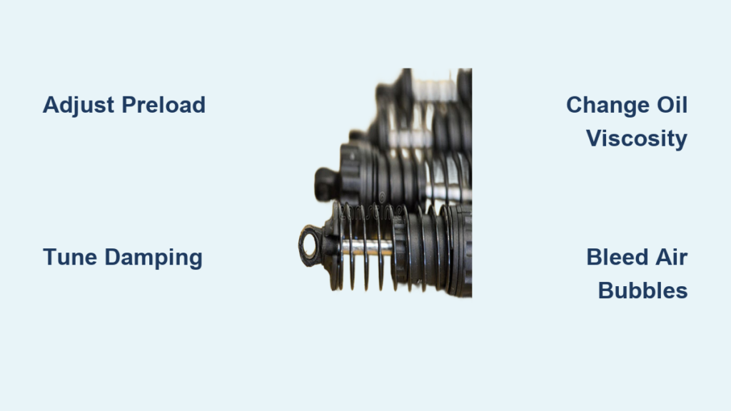 Warning: Excessive preload creates a harsh ride that skips over bumps, while too little preload allows the chassis to bottom out on impacts. Aim for 25-35% of total suspension travel used at rest.