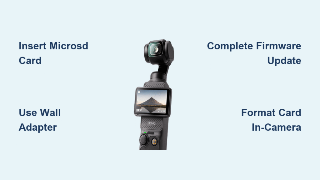 Your brand-new DJI Osmo Pocket 3 won’t record a single frame without proper setup—and skipping one critical step could brick your gimbal. Thousands of users waste hours troubleshooting non-existent problems because they miss the microSD card requirement or firmware update protocol. This guide cuts through the confusion with battle-tested steps verified against DJI’s official documentation. You’ll learn exactly how to power up safely, configure pro settings, and avoid the #1 mistake that causes gimbal instability (hint: it happens during firmware updates).