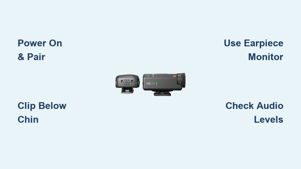 Press and hold the transmitter’s power button for 3 seconds until the LED glows solid blue—no menu diving required. Your DJI Mic Mini automatically pairs with the receiver within 10 seconds, confirmed by matching blue lights on both units. Skip confusing button combinations: this system uses smart pairing technology that eliminates manual frequency selection. If lights flash red instead, check both units have fresh batteries and maintain them within 1 meter during initial pairing.